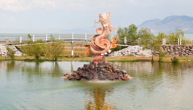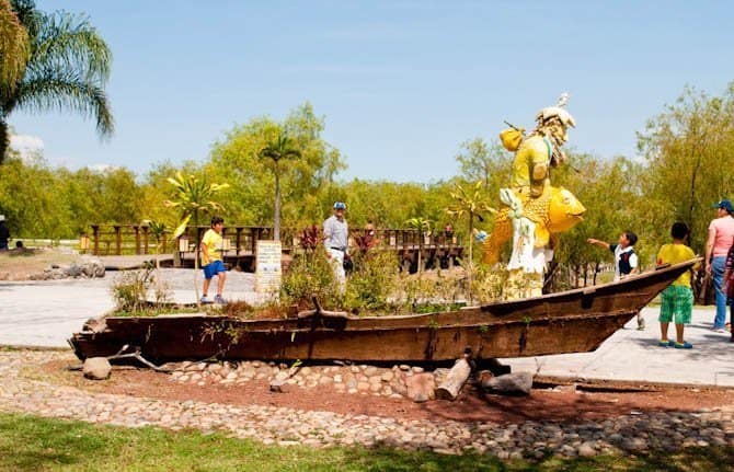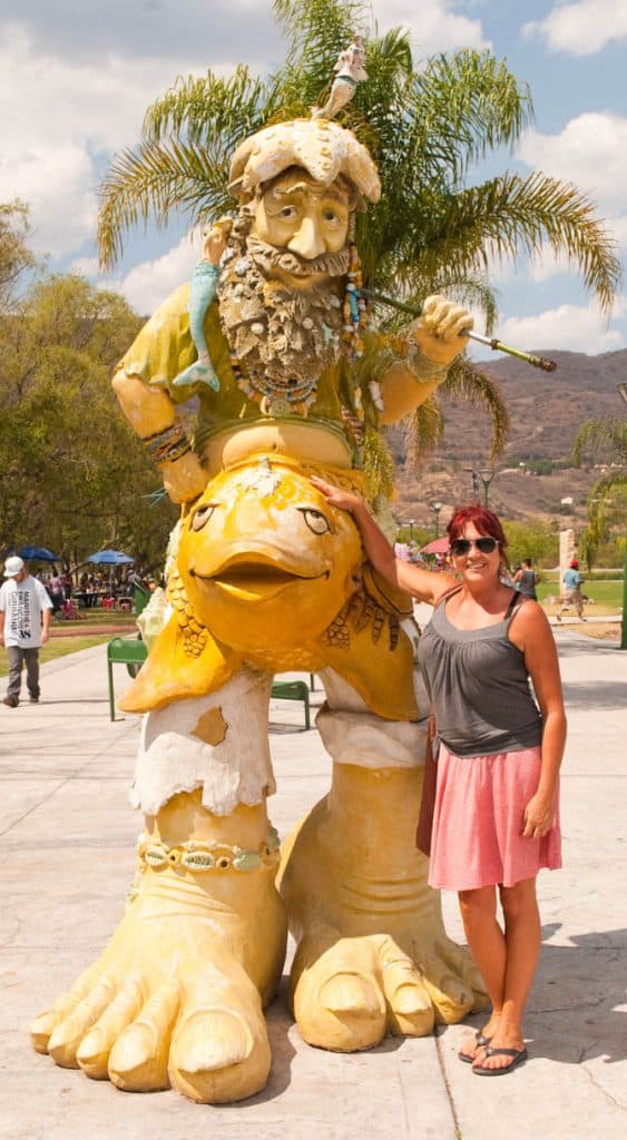 In between the park and what used to be the water’s edge ( I’ll explain later) was the malecon. It too was impressively designed with a wide cement pathway interspersed with beautiful sculptures and with little bridges traversing the lagoon and piers branching off over what used to be the lake. Sadly overuse of the lake water has led to a drop in water levels and the lakeshore now starts about 200 feet from where it used to edge the malecon. That’s Mexico. Now that area is bone dry and filled with kids playing and horses grazing…still a pleasant sight but definitely not what it used to be. To reach the boats that cruise the lake you now have to walk out to the end of the pier where makeshift steps will take you down to the dry shore where you  walk another 100 feet to reach the water. Regardless it is still a fabulous place to spend the day and on Sundays especially you can’t help but be caught up in the laid back, laughter filled ambience that is Mexico.