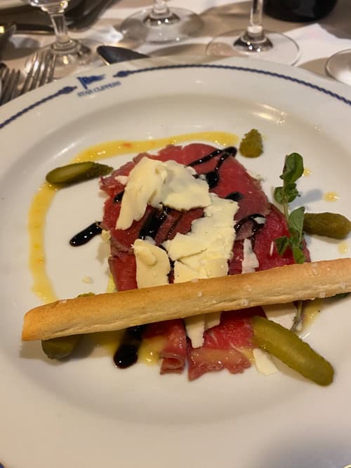 At dinner, you are presented with a daily menu offering a range of starters, mains, and desserts, which will be served at your table by the fabulous dining staff. Again, there were options for every taste and diet, including at least a couple of vegetarian items plus a daily pasta dish.